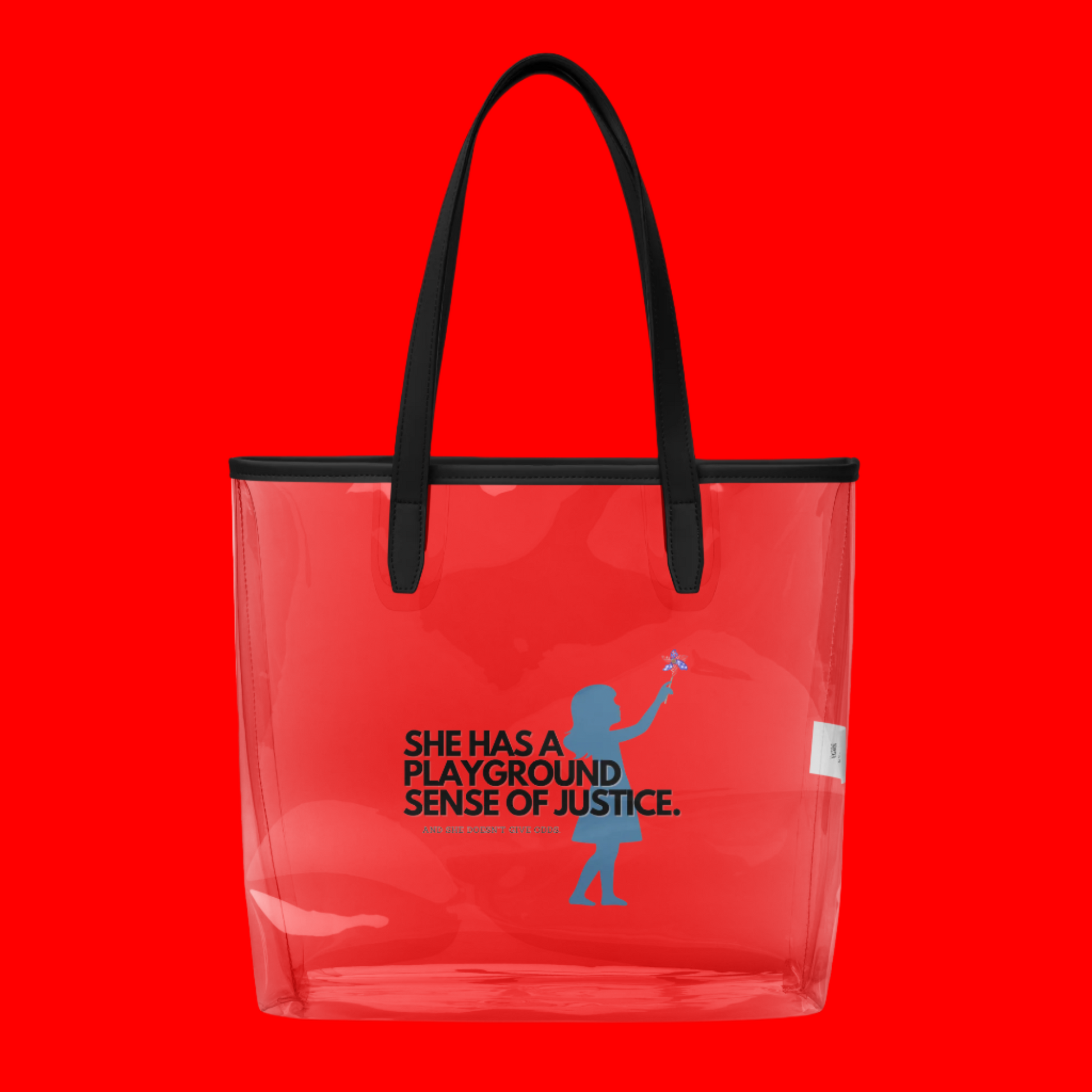 This see-through carryall lets you show off your style while keeping your essentials in plain sight. Perfect for those who love a splash of personality with their practicality, it’s sturdy enough for everyday adventures and playful enough to brighten any outing. Tote your treasures with a wink and a nod to justice!